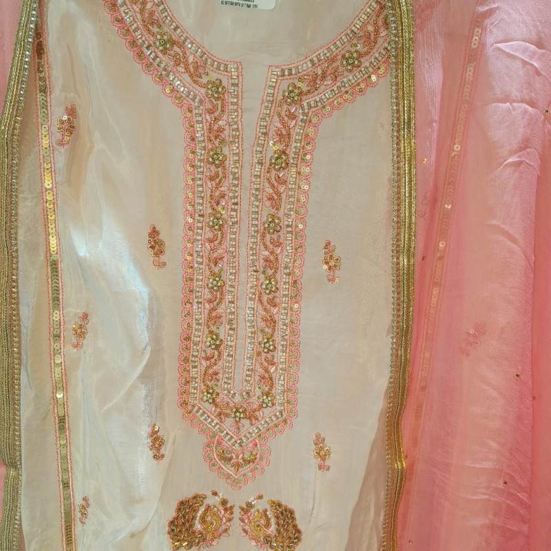 Colour Kameez & Dupatta: A delicate Blush Pink or Powder Pink.Fabric Kameez (Suit): Ap..