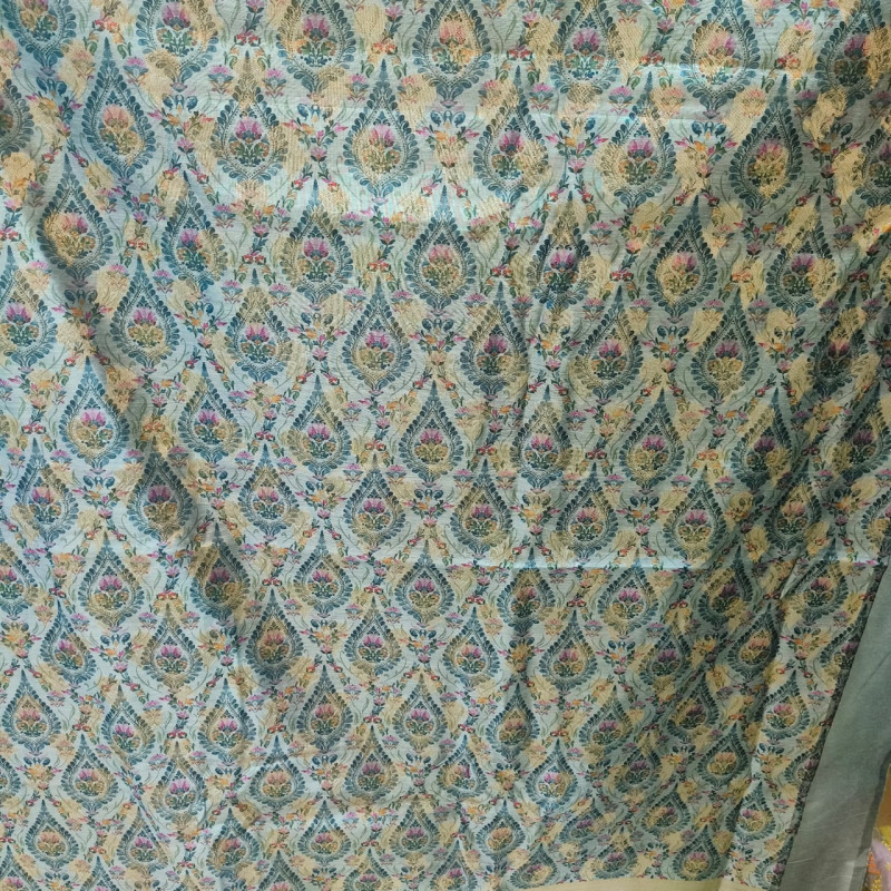 Colour (Top): Light Sky Blue / Pastel Blue (A soft blue base with rich gold zari weaving).