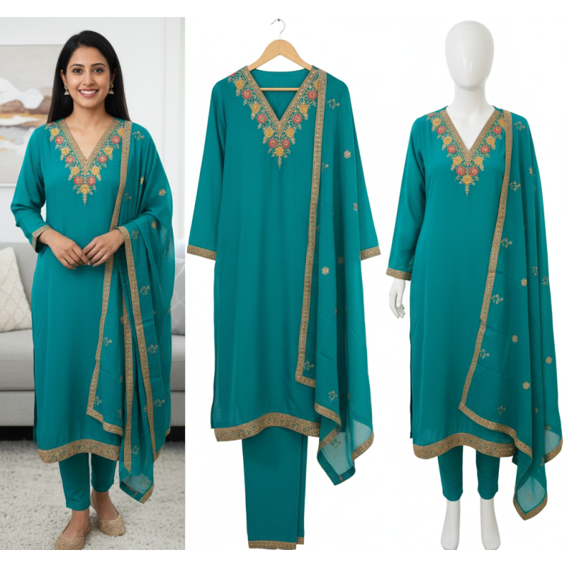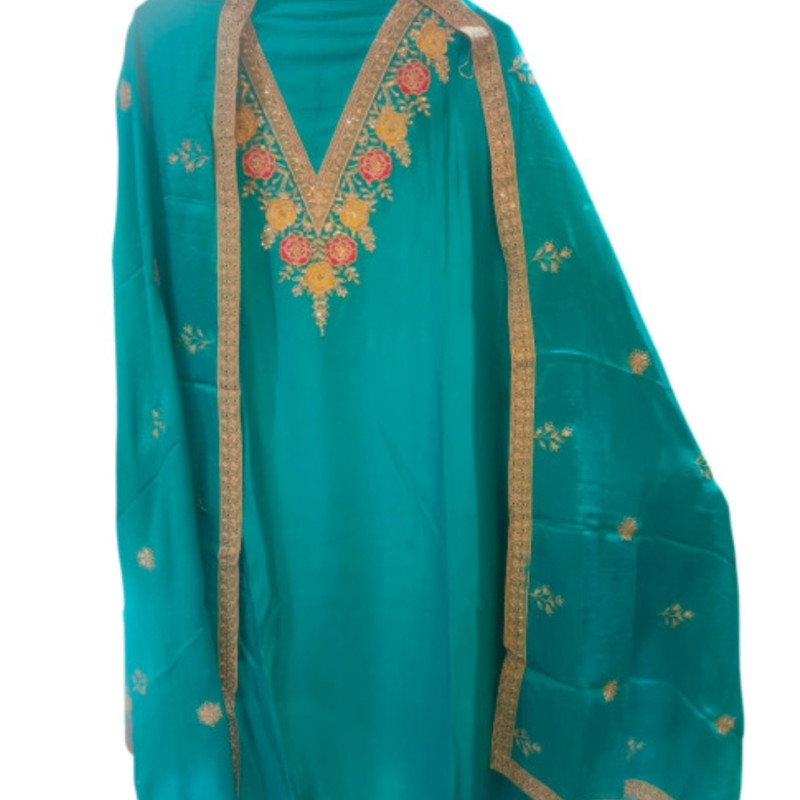 Product Suggestion: Designer Indian Ethnic Wear Product Name Teal Banarasi Dola Silk Unstitched ..