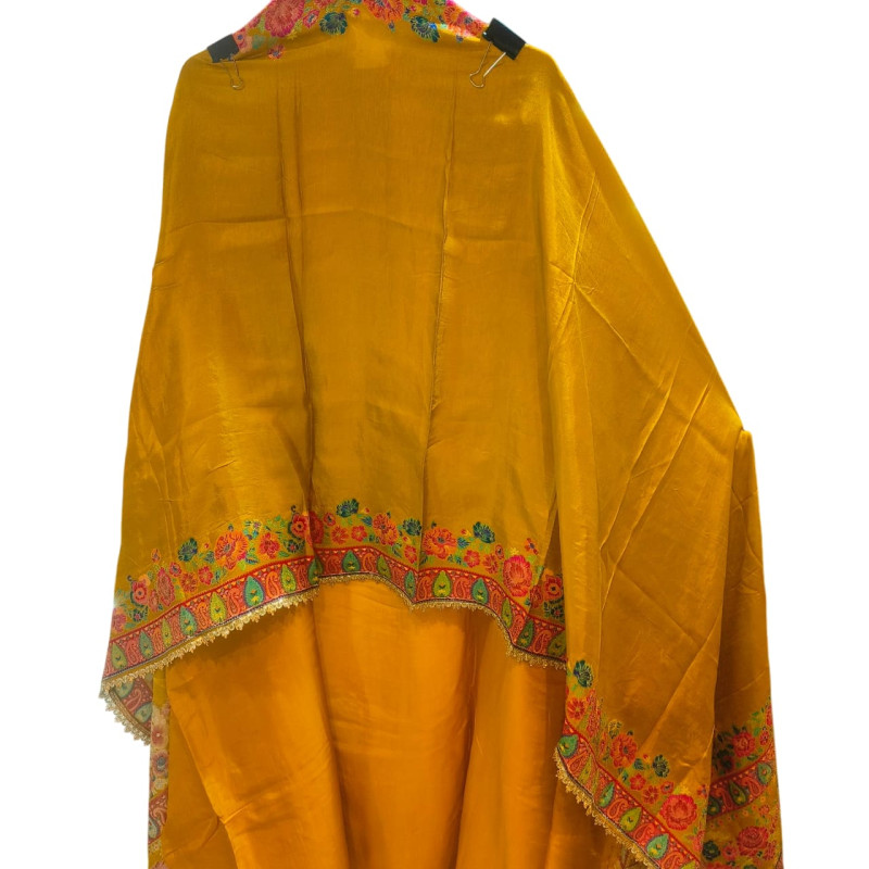 Dupatta Work: Heavy Handwork on a contrasting/complementary fabric like Organza Silk or Heavy Chinon Georgette.