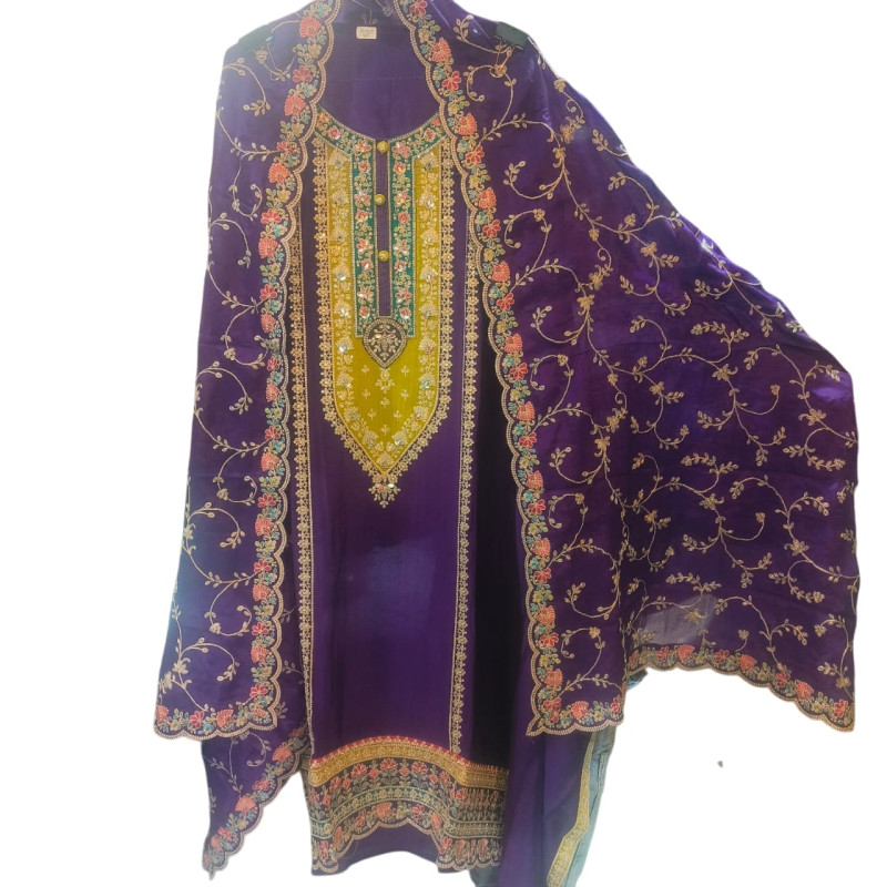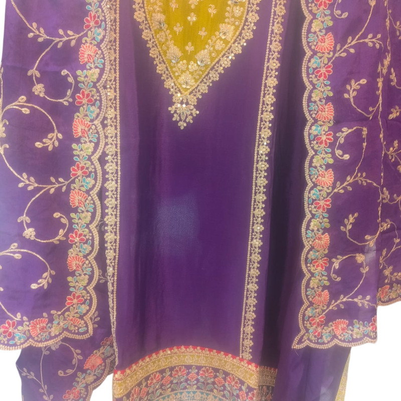 • Product Name Suggestion: Regal Purple Chenon Embroidered Suit or Vibrant Violet Ensemble with Multi-Color Work