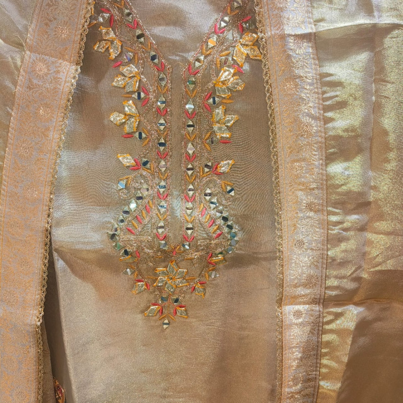 Product Name: Peach Elegance Glass Tissue Suit Set Fabric (Top): Luxurious glass tissue fabric wi..