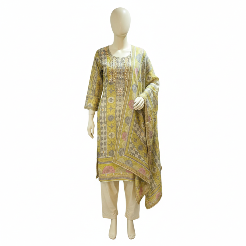 Lemon Crush Barbari Crape Suit Set