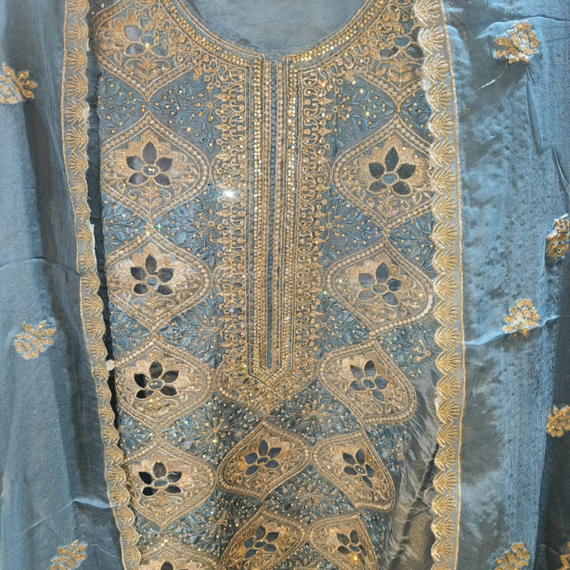 Type: A complete stitched traditional outfit that includes kameez (top), salwar (bottom), and often ..