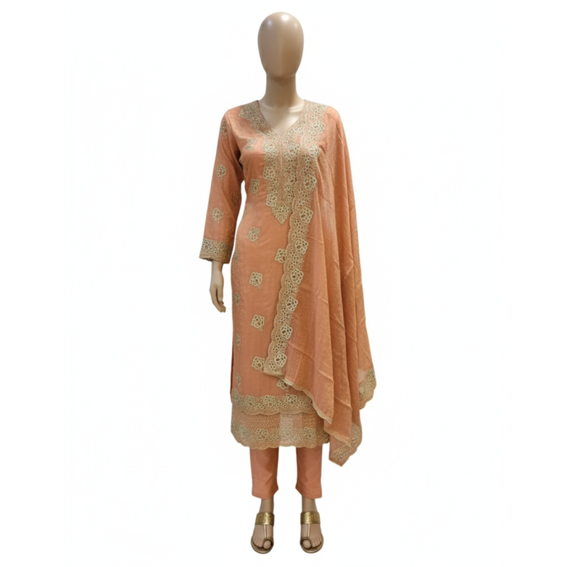 Elegant Peach & Floral Embroidery Salwar Suit Set (You can also use a more specific brand/design..