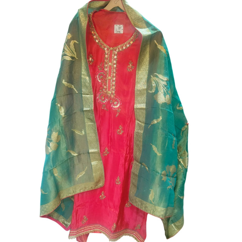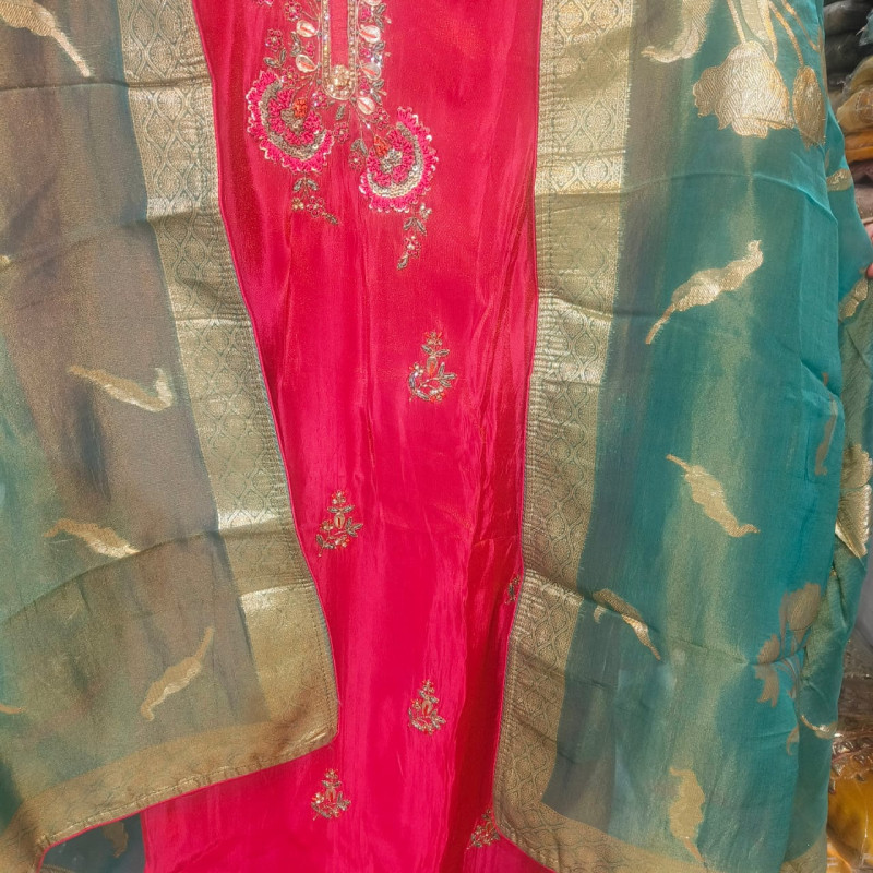 Suggested Product Name: Hand-Worked Tissue Silk Salwar Suit with Heavy Glass Tissue Dupatta Price..