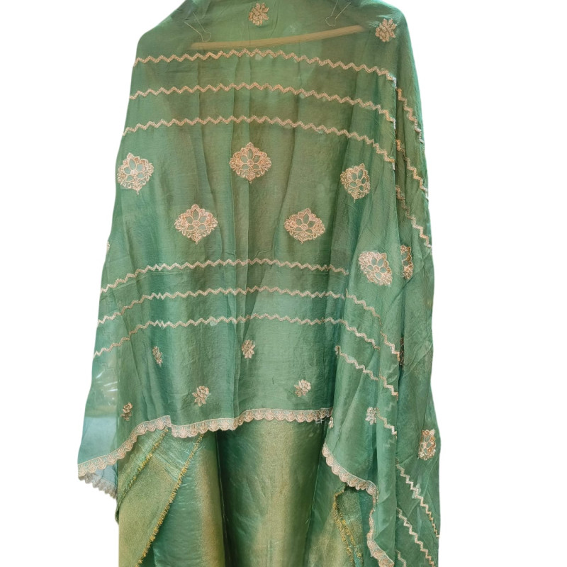Dupatta: The dupatta is crafted from chiffon fabric with heavy embroidery and a matching border, perfectly complementing the top.