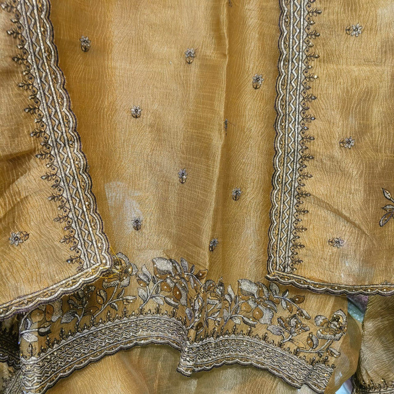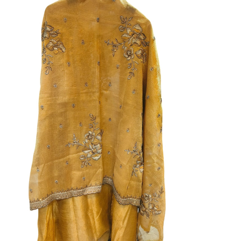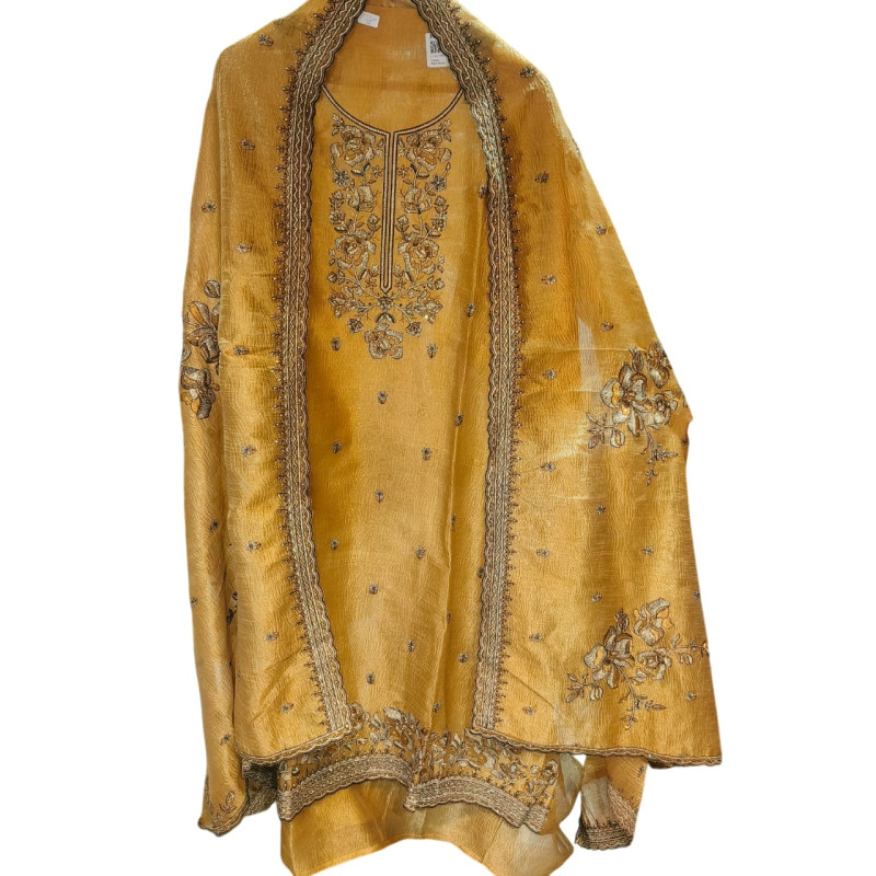 Mustard Gold Zari Embroidered Salwar Suit