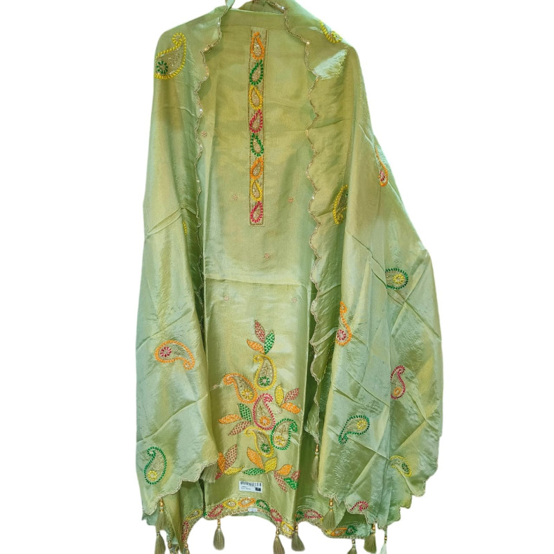 Overall Price: ₹3,100 (Unstitched 3-Piece Suit Set). Fabric (Kurta/Top): Premium quality fab..