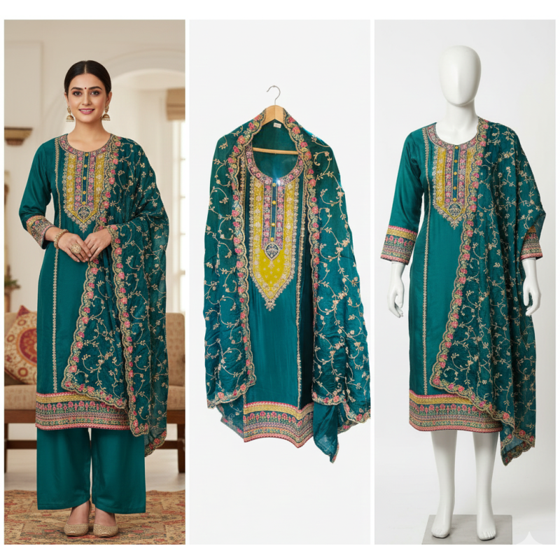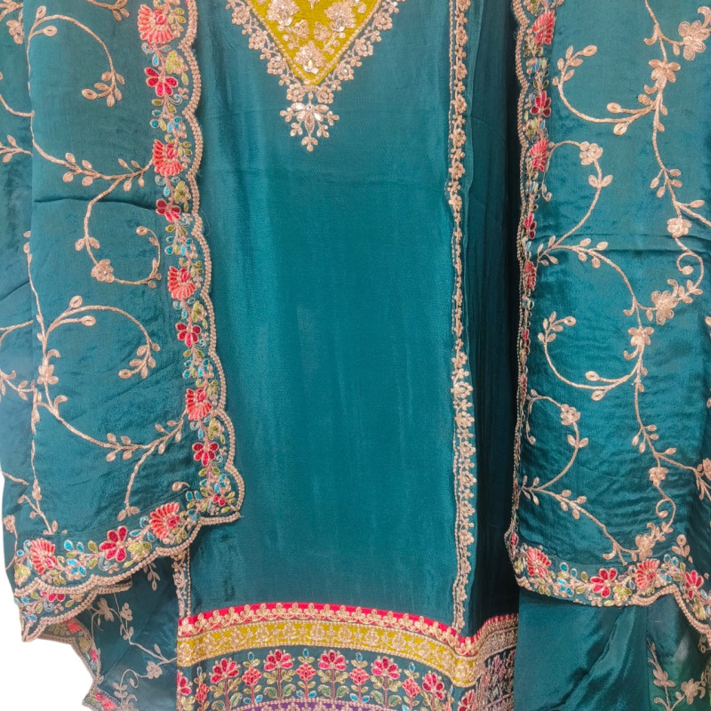 Product Name: Elegant Peacock Chenon Embroidered Suit Set