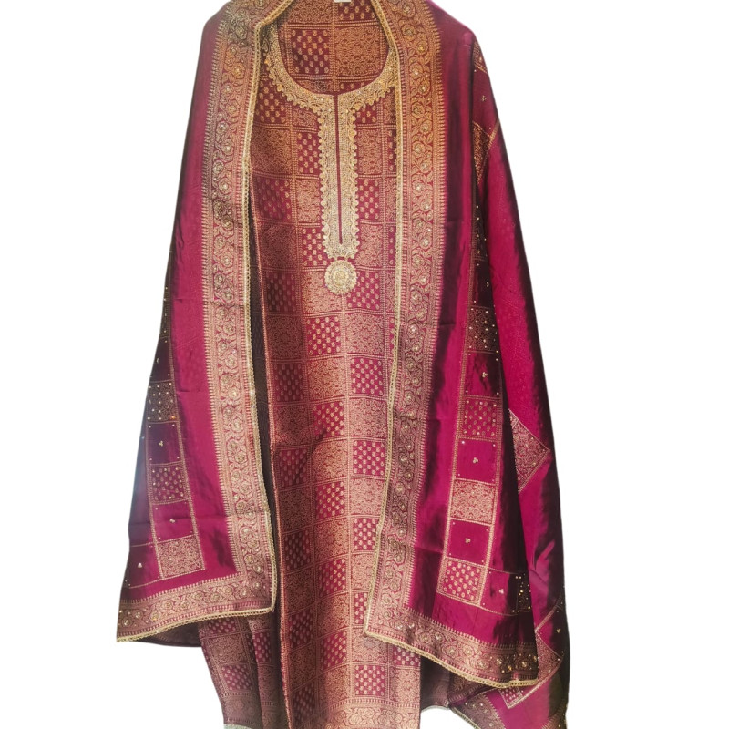 Wine Red Banarasi Brocade Suit