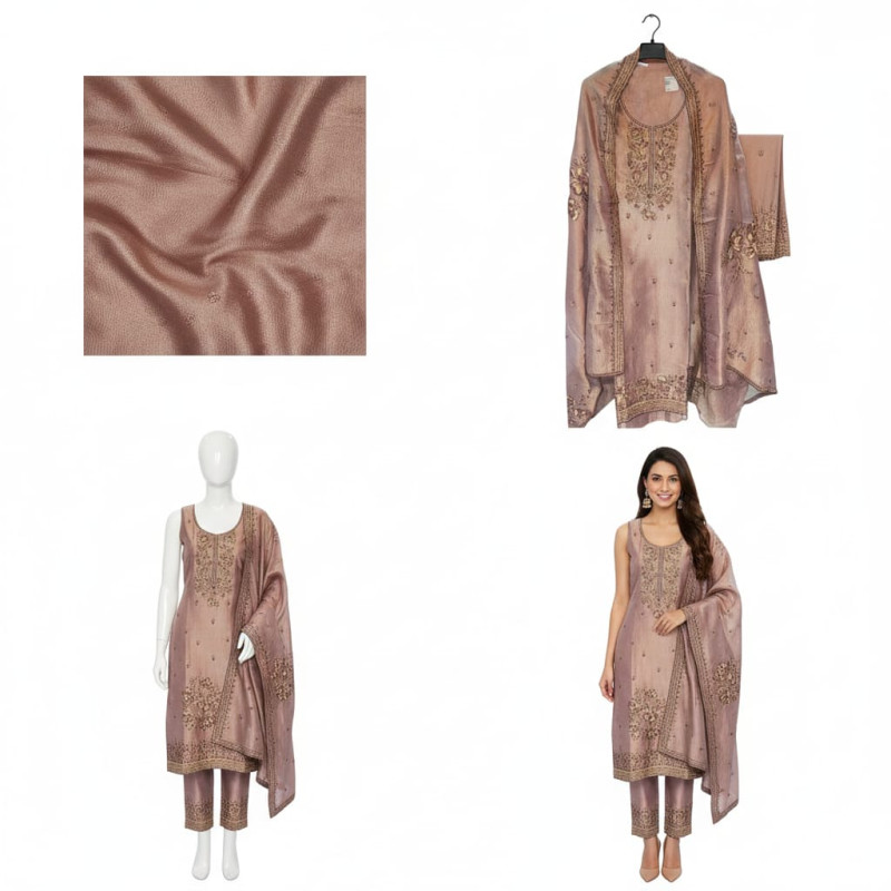 Overall Price: ₹3,100 (Unstitched 3-Piece Suit Set). Fabric (Kurta/Top): Premium quality fab..