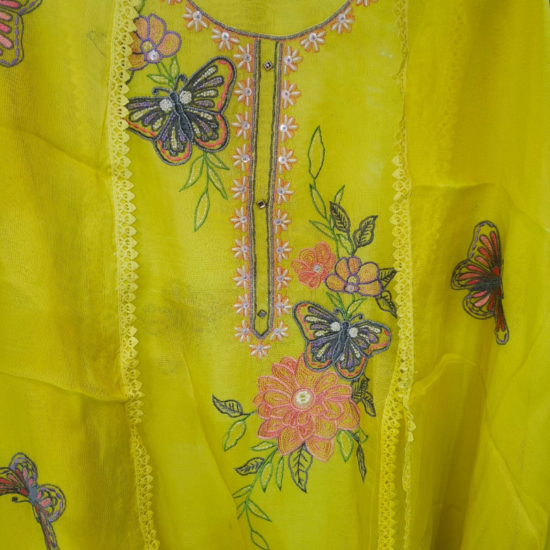 Overall Price: ₹3,100 (Unstitched 3-Piece Suit Set). Fabric (Kurta/Top): Premium quality fab..