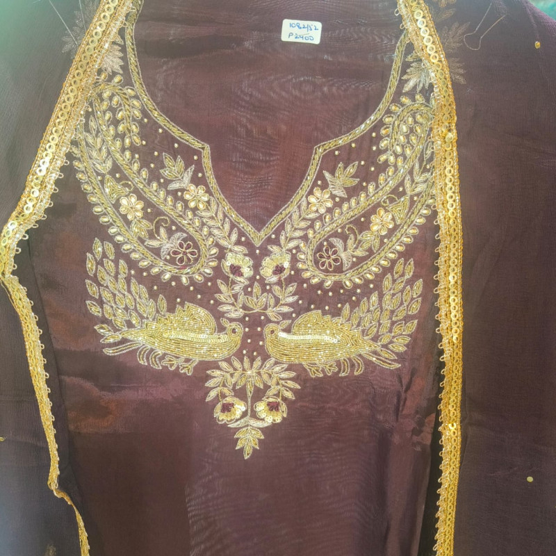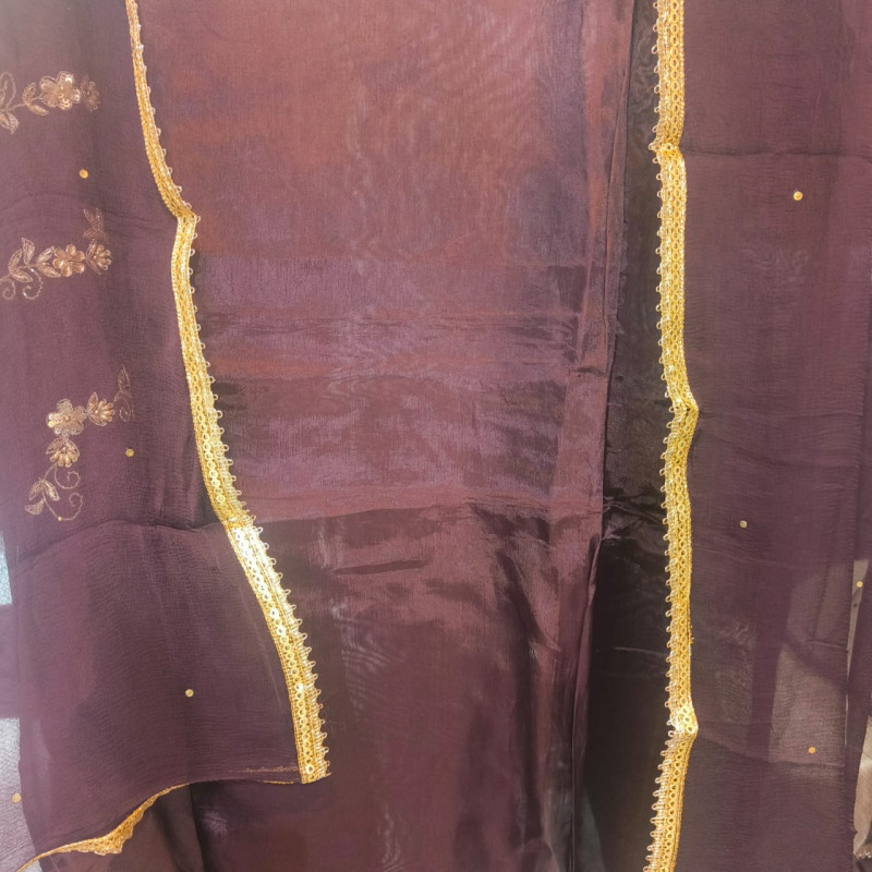 Coffee Crape Suit Set Details Fabric (Top/Kurta): Crape Fabric (Dupatta): Plain Chiffon Fabri..