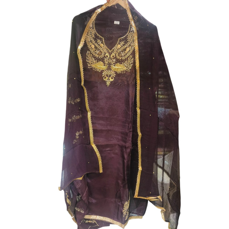 Rosewood & Gold Heavy Work Suit Set with Shaded Dupatta