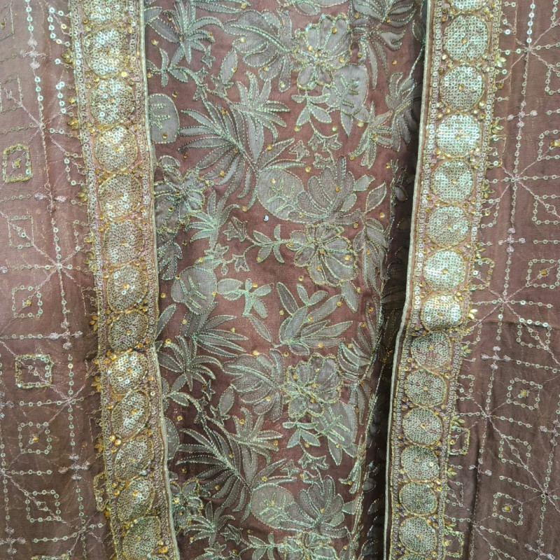 Product Name: Rosewood & Gold Heavy Work Suit Set with Shaded Dupatta