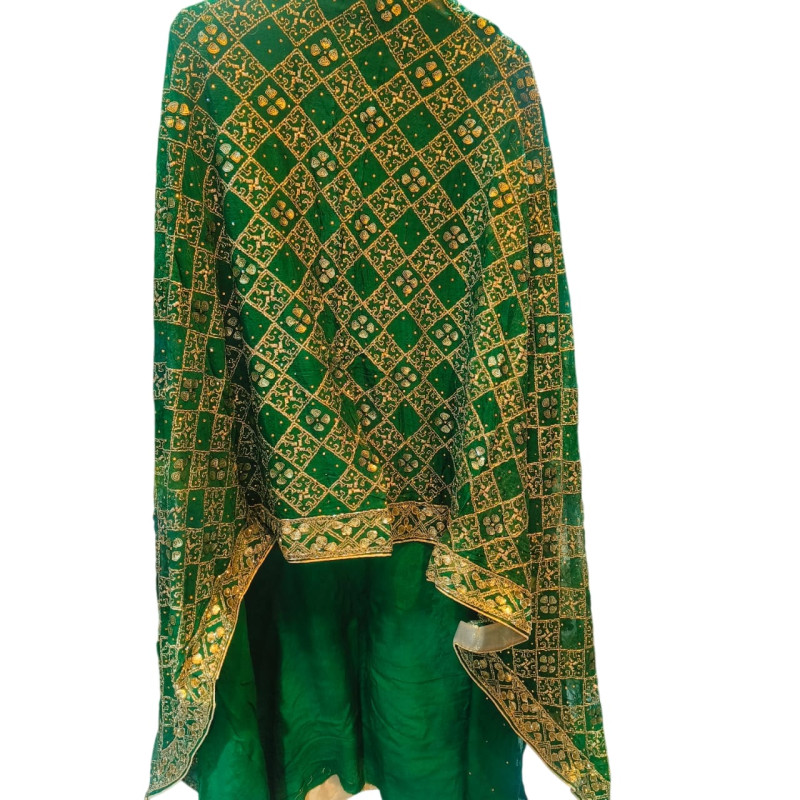 Product Name: Royal Green Hand-Embroidered Chennon Suit Set.