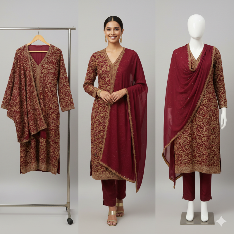 Product Name: Gul-E-Naaz (Meaning 'delicate flower,' reflecting the rich, feminine tone and fabric t..