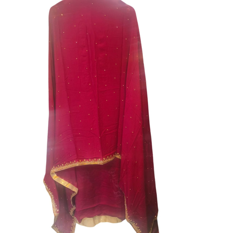 Dupatta: A minimalist, plain chiffon dupatta is included to balance the heavy embroidery of the top.