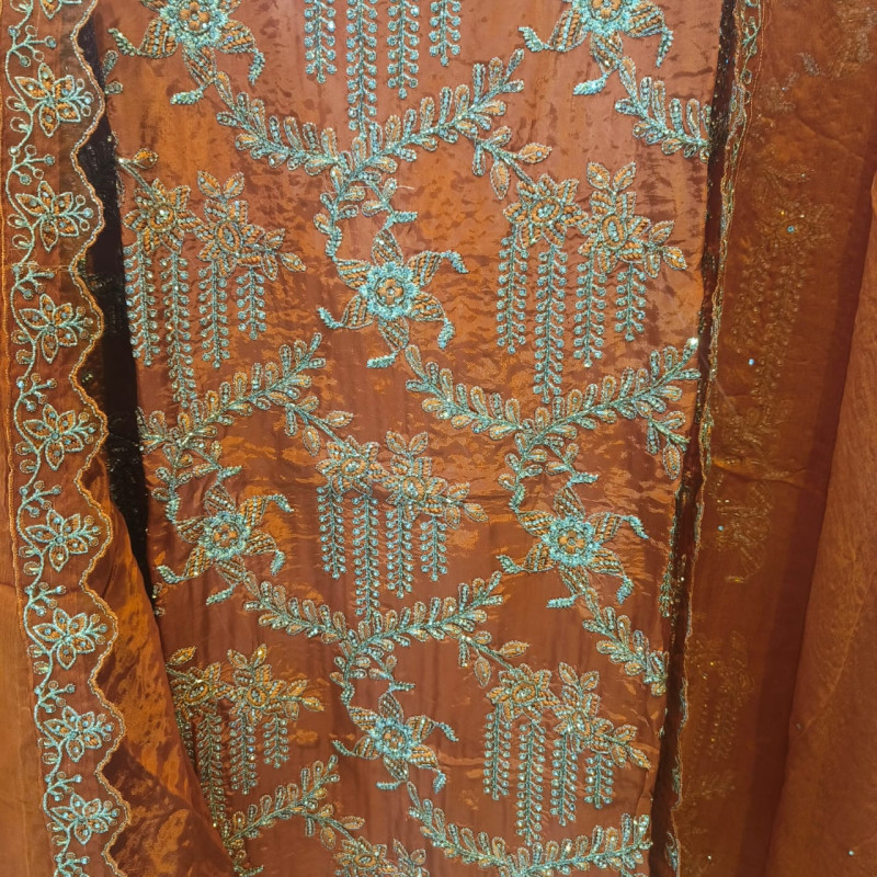 Product Name: Rust Radiance Cutdana Crepe Suit Set.