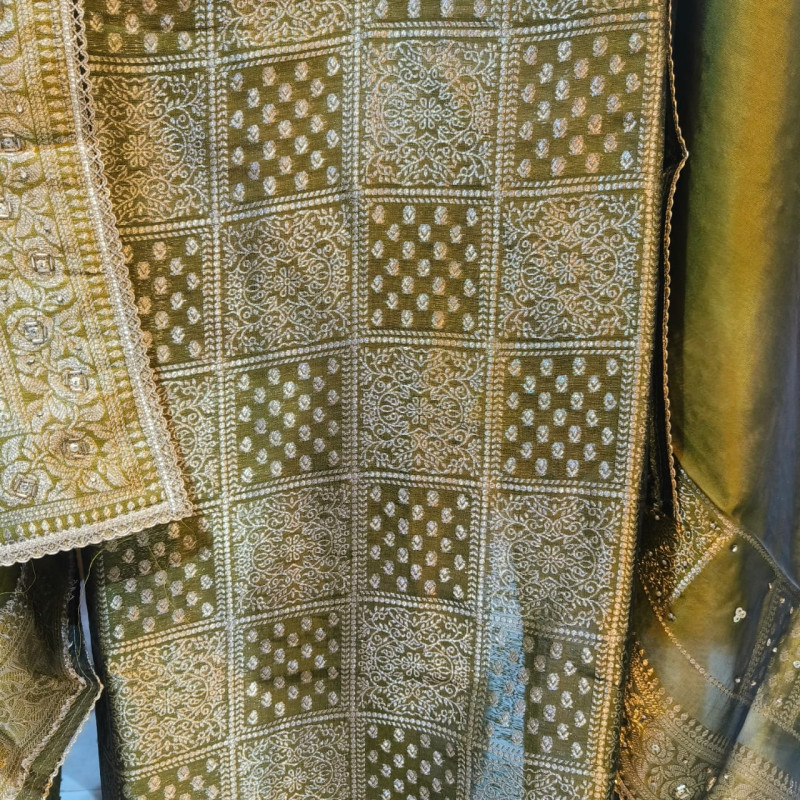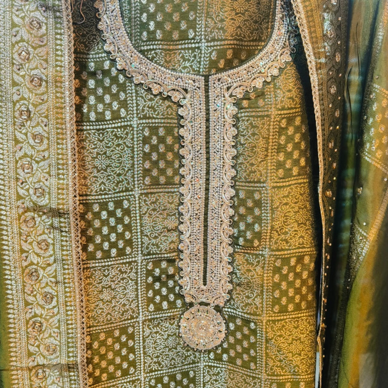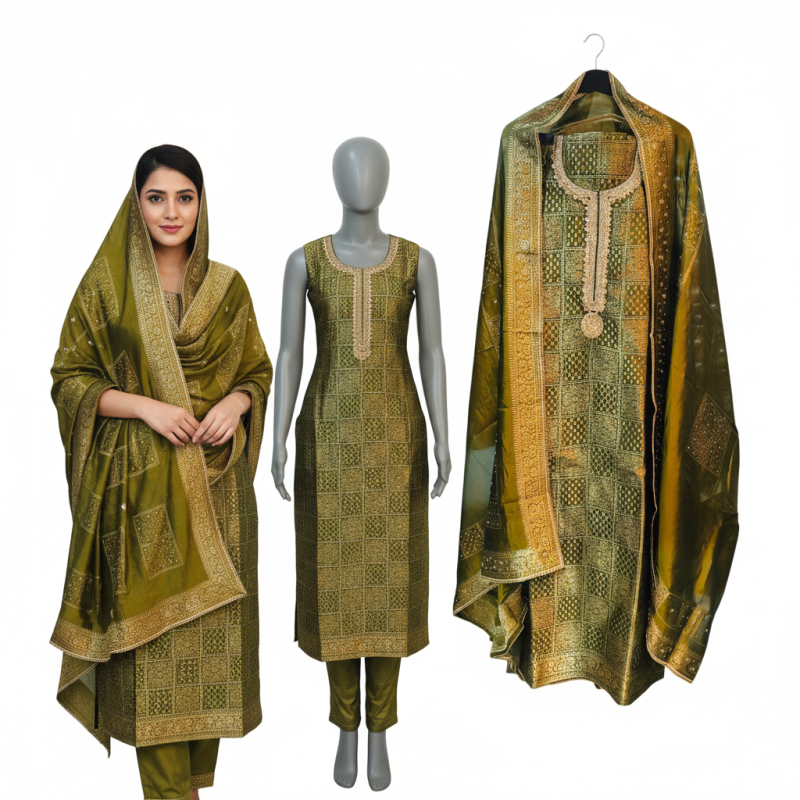 Elevate your ethnic wardrobe with this stunning Green suit set, meticulously crafted for elegance and tradition. This ensemble features a sophisticated combination of rich textures and intricate detailing, making it perfect for festive celebrations and special occasions.