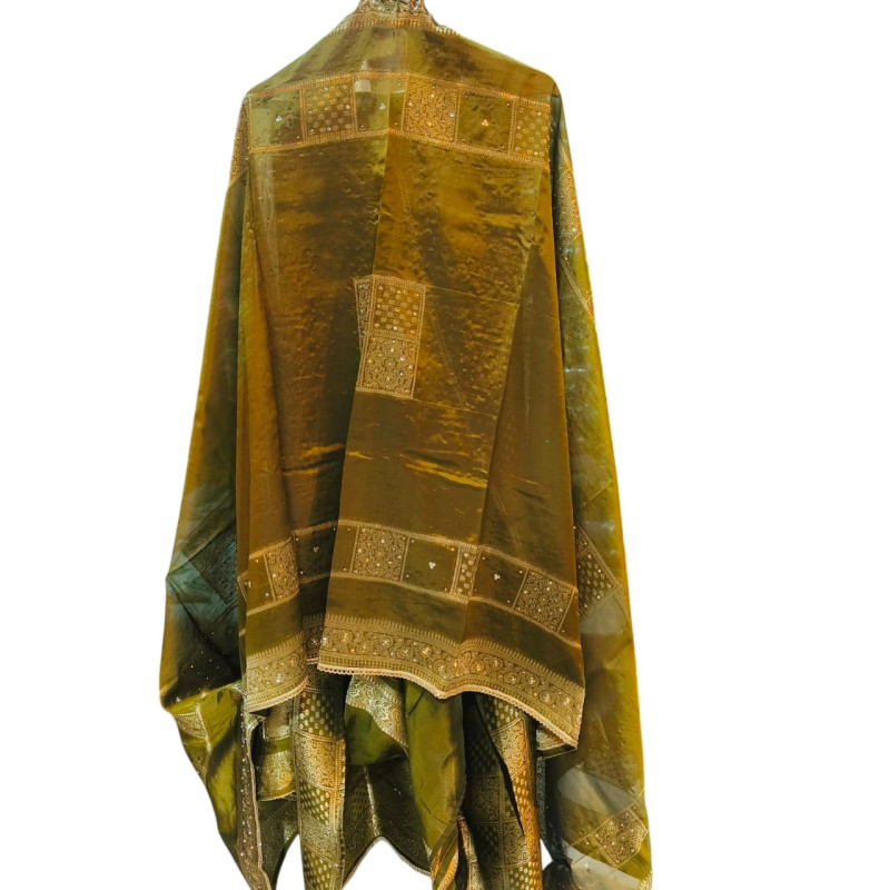 Fabric (Kameez & Dupatta): Premium Silk Jakhat, known for its luxurious sheen and durable weave.