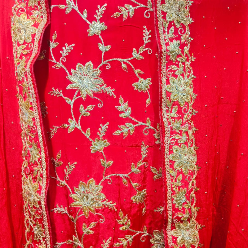 Fabric (Kamiz/Shirt): High-quality Pure Crape fabric that provides a rich texture and elegant drape.