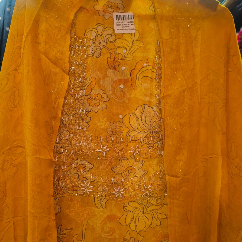 Product Name: Elegant Crape Heritage Suite Fabric (Kameez): Premium Crape fabric featuring heavy ..