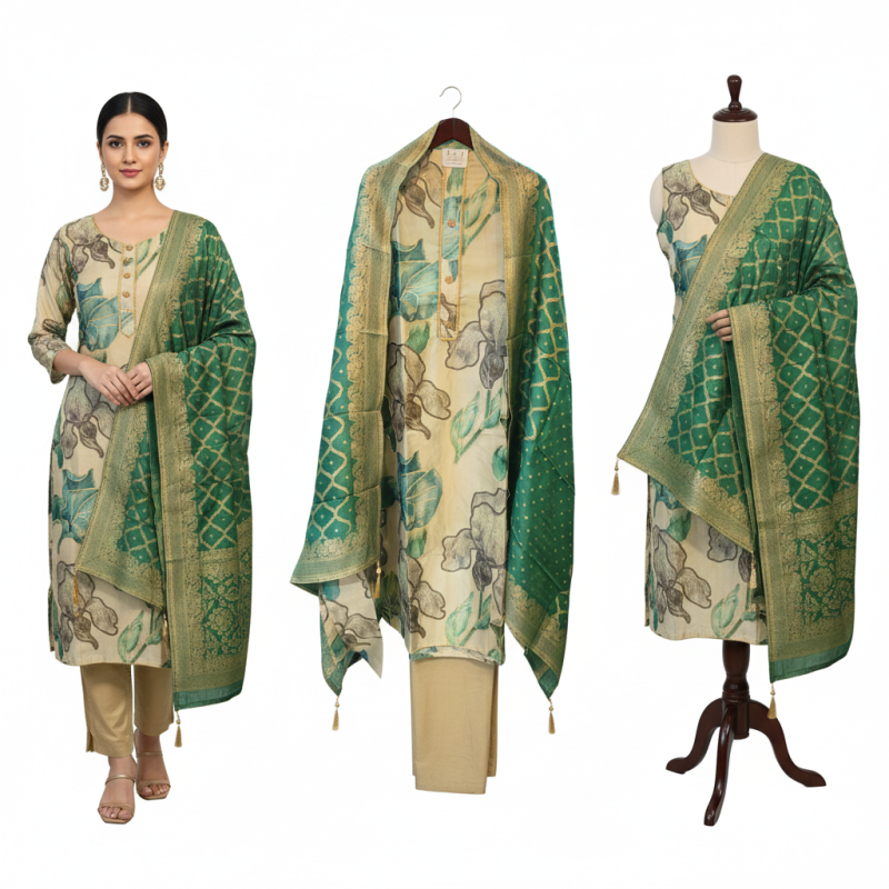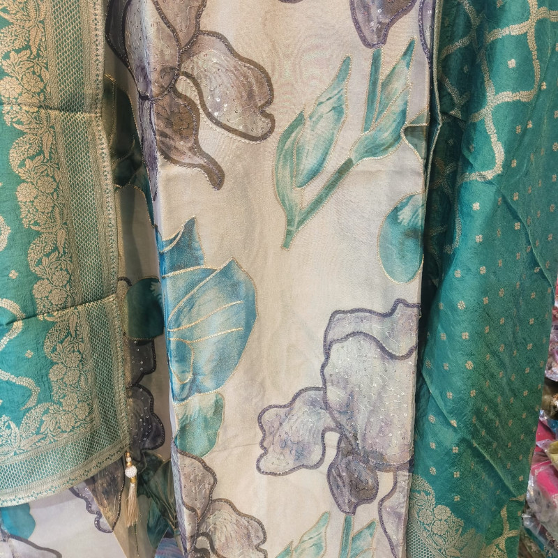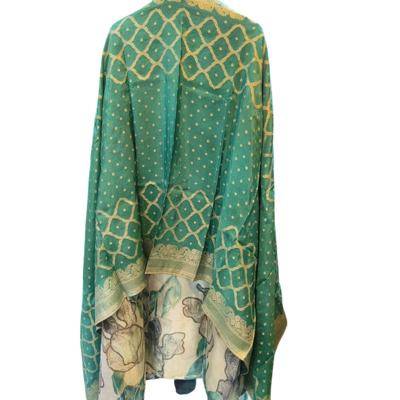 Dupatta: Rich Banarsi dupatta featuring traditional patterns and a royal finish.