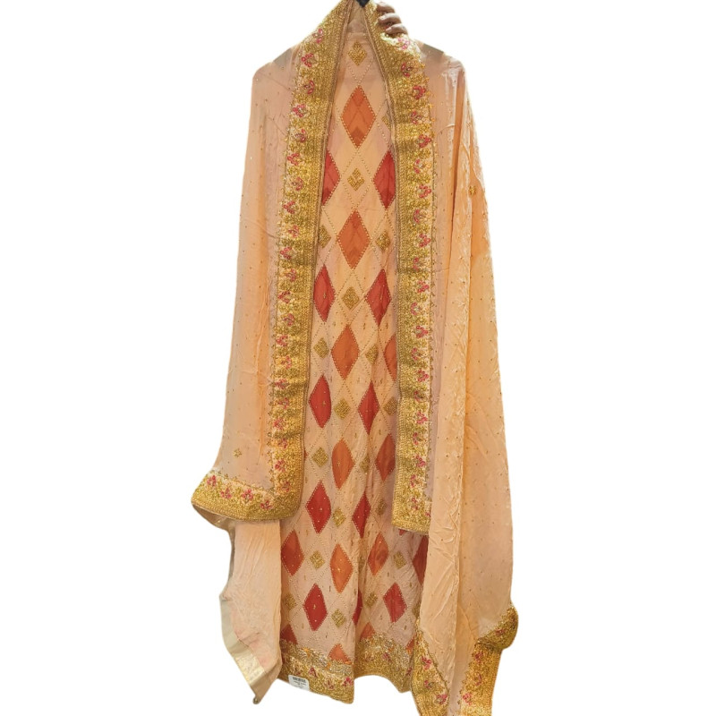 Product Name: Elegant Crape Heritage Suite Fabric (Kameez): Premium Crape fabric featuring heavy ..