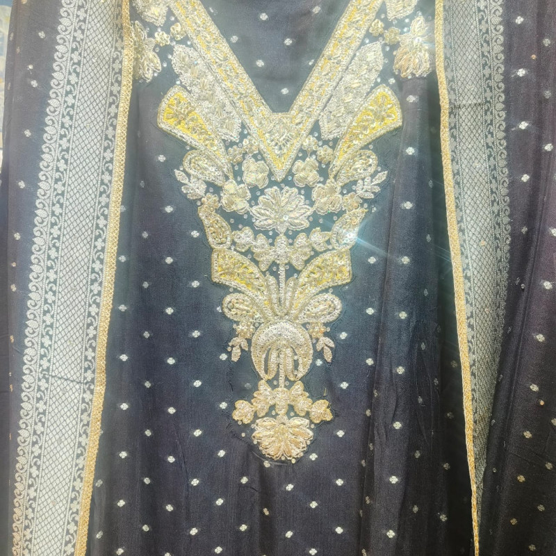 Tags: #GeorgetteSuit, #UnstitchedFabric, #DesignerEthnicWear, #DabkaWork, #SitaraEmbroidery, #EthnicFashion, #LuxuryTextiles, #BoutiqueCollection, #WeddingWear, #IndianEthnicWear