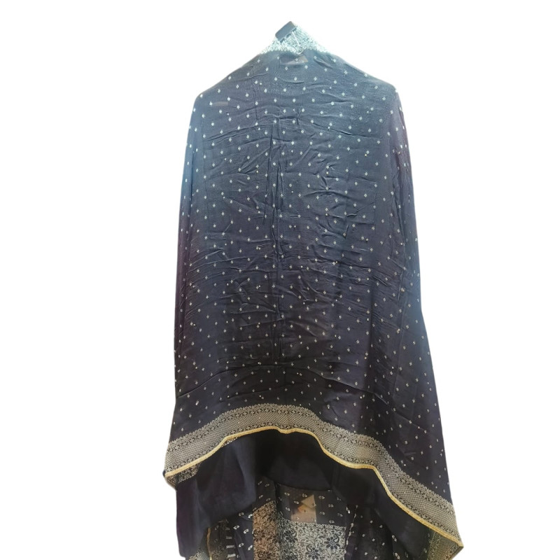 Dupatta: A heavy designer Dupatta adorned with complex Georgette embroidery and a full woven border.