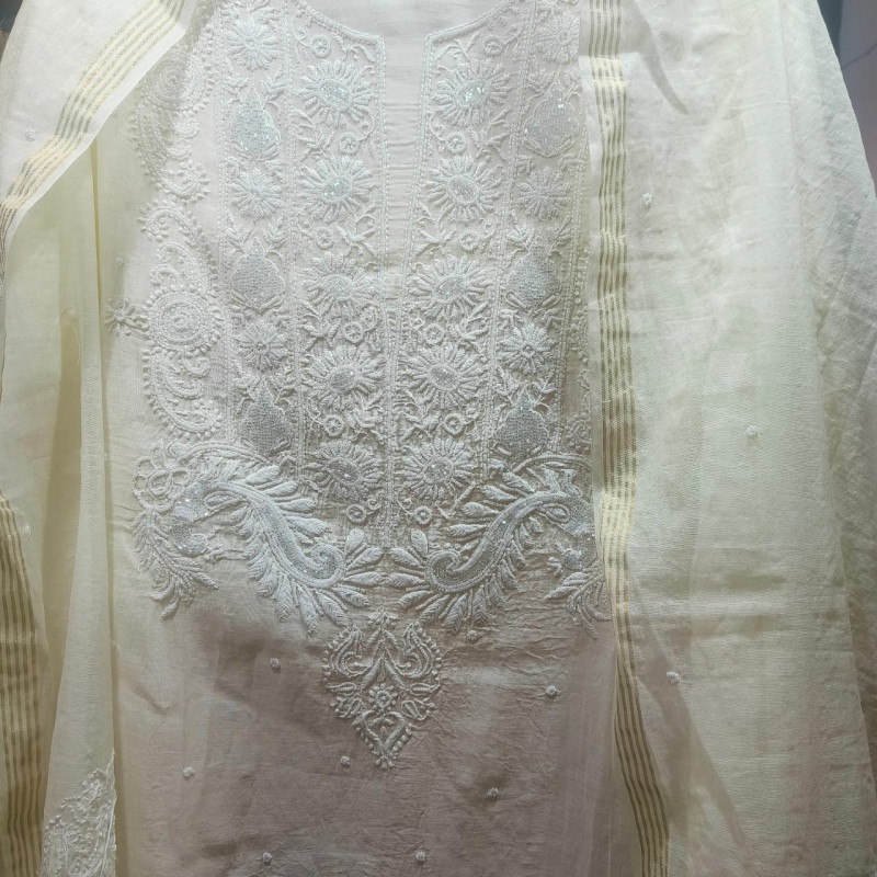 Fabric Description: * Top: Ultra-soft, breathable Mal Cotton featuring authentic handcrafted Chikankari and Lakhnavi thread work on the neckline.