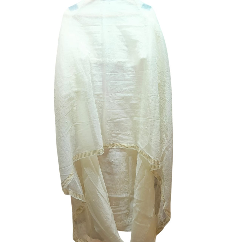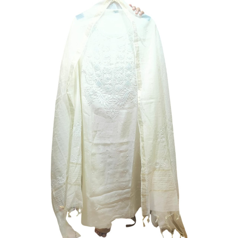 Ethereal White Lakhnavi & Chikankari Mal Cotton Unstitched Suite
