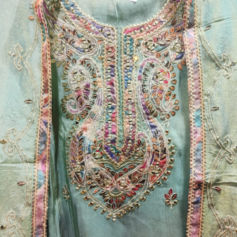 Tags: #ShimmerSuit, #PistaGreen, #GottaPattiWork, #UnstitchedFabric, #HeavyDupatta, #BoutiqueCollection, #IndianEthnicWear, #FestiveFashion, #CrepeBottom, #DesignerSuits, #WeddingGuestOutift, #MintGreenStyle, #VeeranFashions