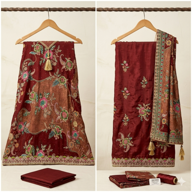 Product Type: Premium Three-Piece Unstitched Suit Material (Fabric Set).