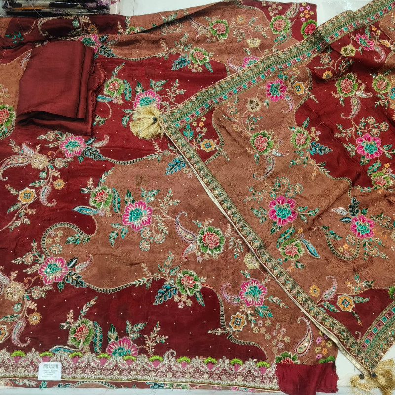 Tags: #BrownSuit, #CrepeFabric, #Threadwork, #UnstitchedSuits, #HeavyDupatta, #IndianEthnicWear, #BoutiqueCollection, #WeddingOutfits, #TraditionalWear, #DesignerFabric, #DelhiBoutique, #RustBrownStyle