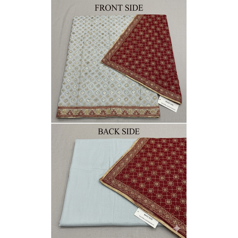 Product Name: Royal White Chinon Silk Unstitched Suit with Deep Red Banarasi Style Dupatta