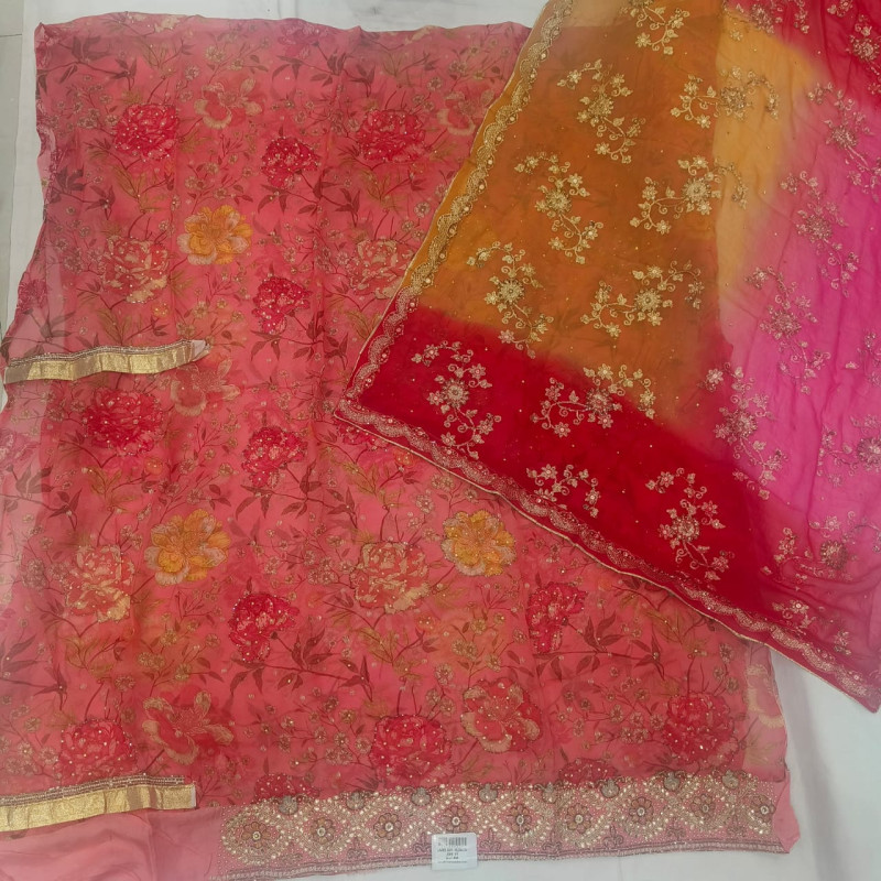 Product Details Product Name: Veeran Fashions Sunset Ombre Organza Unstitched Floral Suit Fabric..