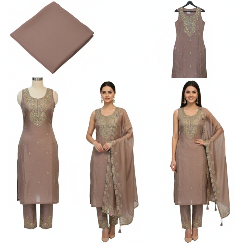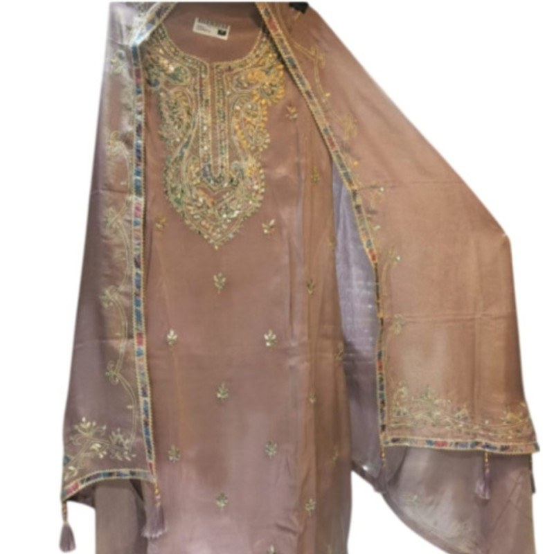 Price: ₹4500 (This price point is a strong fit for a well-embroidered unstitched tissue silk suit wi..