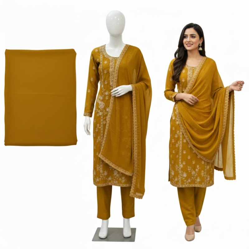 💚 Product Suggestion & Details Product Name: Elegant Peacock Chenon Embroidered Suit Set Fab..