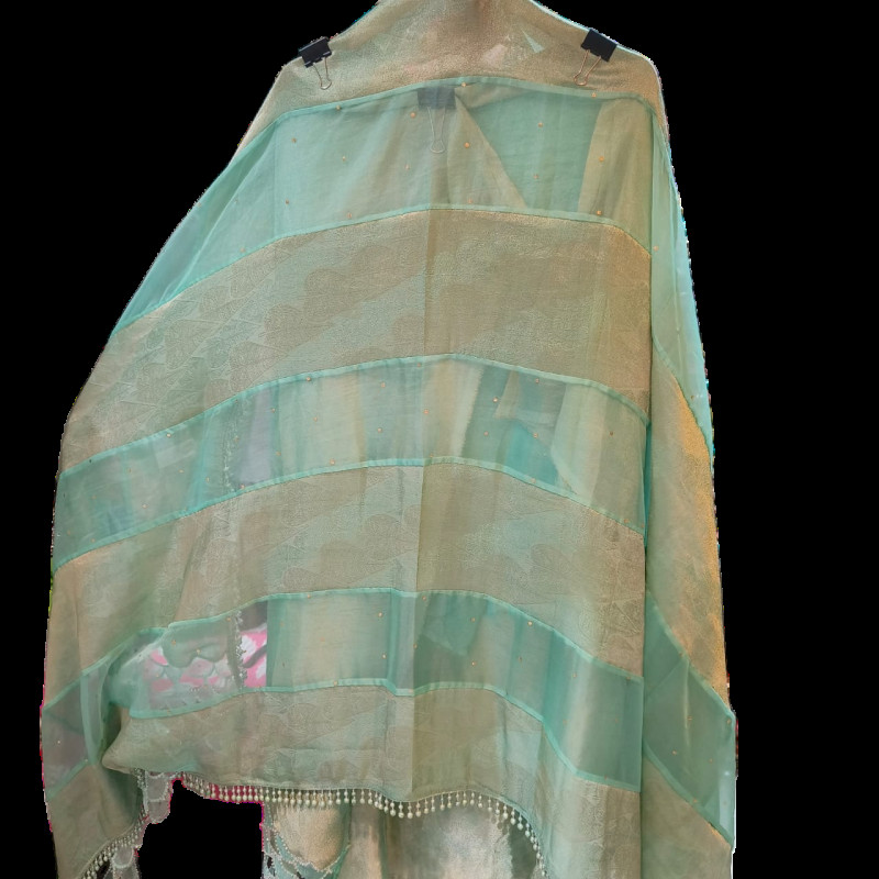 Dupatta: Organza and Tissue Mix Dupatta in a matching or complementary sea-green shade. The Dupatta is a key feature, showcasing: