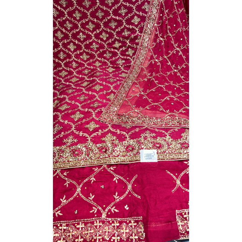 Fabric and Colour: The fabric appears to be a rich velvet in a deep, vibrant colour, likely Rani Pink, Fuchsia, or Magenta. Velvet is a luxurious and heavy fabric, often chosen for formal or winter wear.