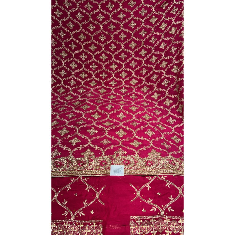 Work on Bottom: The lower section of the fabric (which would be used for the salwar, churidar, or palazzo bottom) is also in the same rich colour.