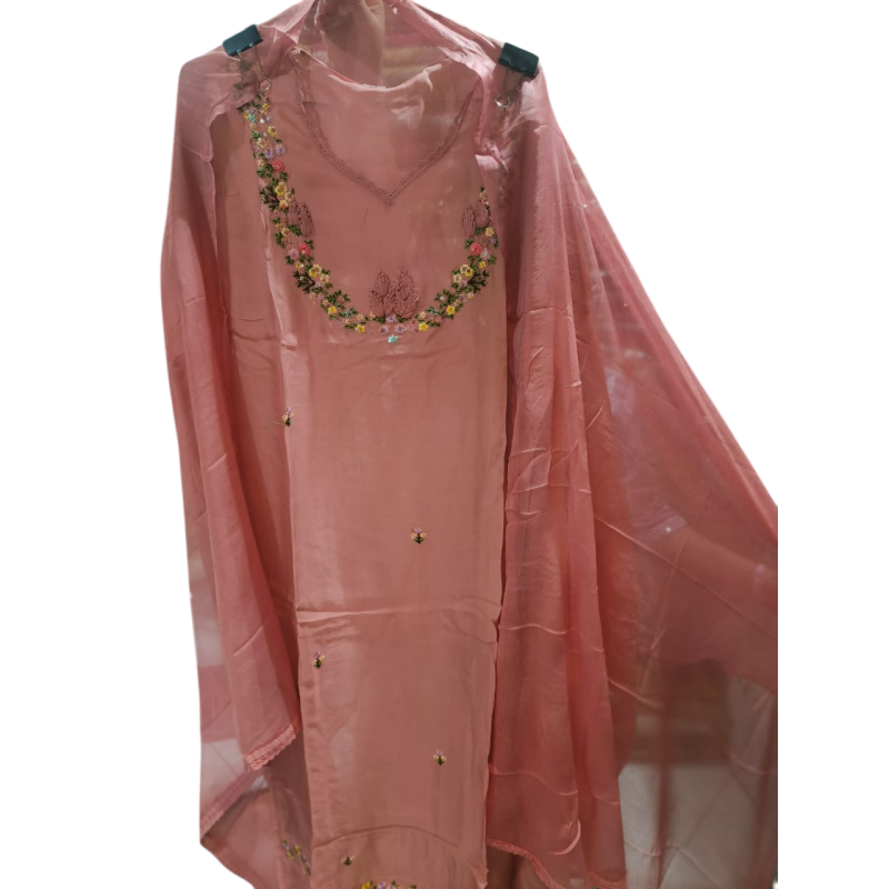 | Product Name | Floral Embroidered Pastel Rose Pink Georgette Salwar Suit Set |